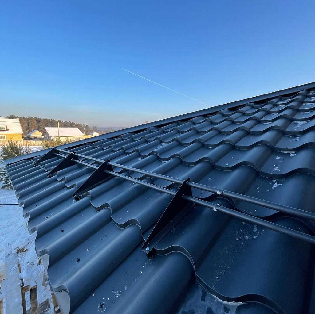 Функция снегозадержателей состоит в том, чтобы предотвращать сползание или неконтролируемое обрушение во дворы или на придомовые постройки снеговых наносов, осевших на кровле после снегопадов. Весь объем выпавших осадков должен удерживаться находящимся на ней устройством вплоть до полного его стаивания.